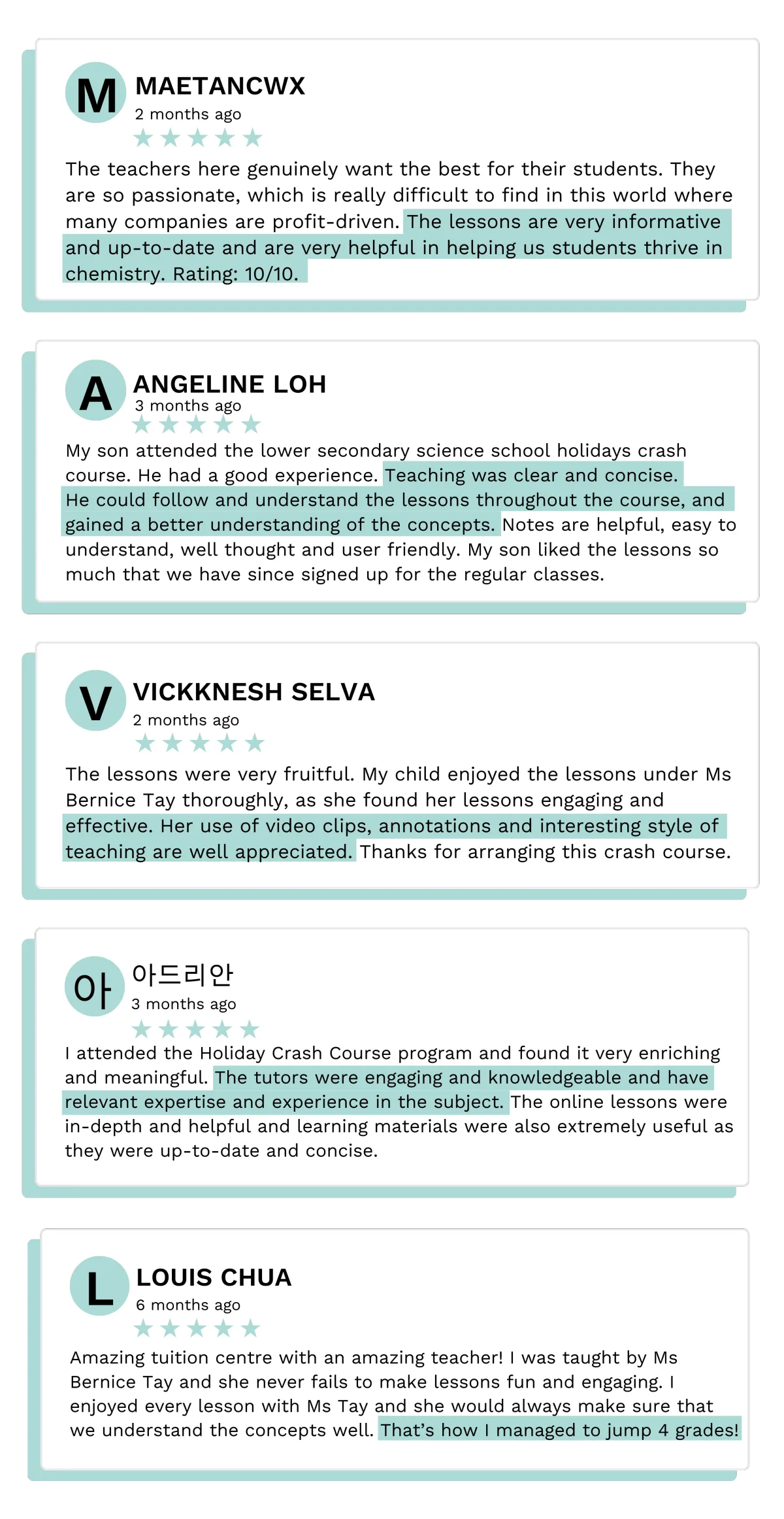 Hi parents and students, I'm Ms. Bernice, ex-MOE teacher for >10 years.